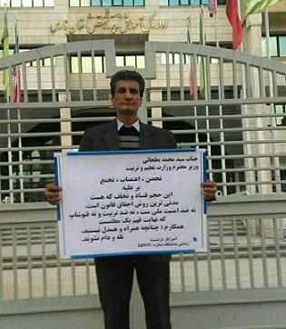 اتهامات علیه این معلم تبلیغ علیه نظام و توهین به خامنه ای و حضور در تجمعات معلمان شیراز و تهران بود.