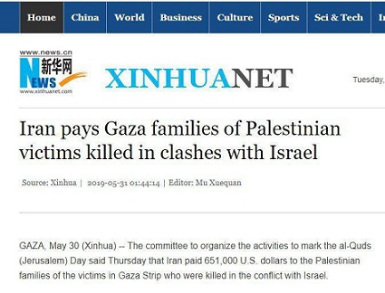 به گزارش خبرگزاری چین، حکومت ایران پنجشنبه گذشته به مناسبت فرارسیدن «روز قدس» ۶۵۱ میلیون دلار کمک مالی در اختیار خانواده های فلسطینیانی گذاشته که در جریان درگیری های نظامی با اسرائیل کشته شده اند. این پول پنجشنبه گذشته سی ام ماه مه در جریان کنفرانسی در شمال شهر غزه در اختیار شخصیت های بانفوذ سازمان های حماس و جهاد اسلامی قرار گرفته است.