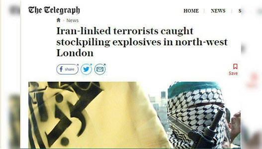 روزنامه تلگراف انگلستان امروز یکشنبه نوزدهم خردادماه نودوهشت گزارش داده که نیروهای امنیتی بريتانيا یک گروه تروریستی وابسته به رژیم ایران را که در حال انبار کردن چند تن مواد منفجره در انباری در حومه لندن بودند را دستگیر کرده است.
