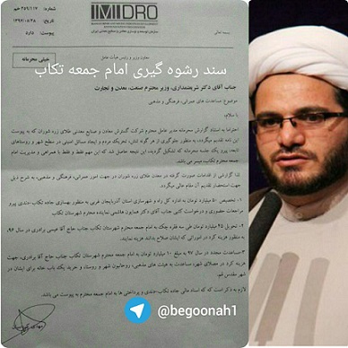 یک سند خیلی محرمانه از پرداخت رشوه پنجاه و پنج میلیارد تومانی از جانب معدن طلای زره شوران به عیسی برادری امام جمعه تکاب در آذربایجان غربی افشا شده است.