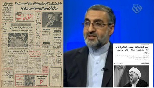 همانگونه که اکنون شیخ می گوید زندانی سیاسی نداریم و زندانی امنیتی داریم!در رژیم دیکتاتوری وابسته و دست نشانده شاه نیز همین روش بکار برده میشد. نمونه ای از روزنامه اطلاعات در رژیم دیکتاتوری شاه گویای این حقیقت است که شاه و شیخ دو روی یک سکه به نام دیکتاتوری هستند. اکنون رضا پهلوی میخواهد برای راضی کردن اربابانش میراث پدر گور بگورش را زنده کند! حقیقتا آب گیرش نیامده وگرنه شناگر ماهری است. اما شتر درخواب بیند پنبه دانه!