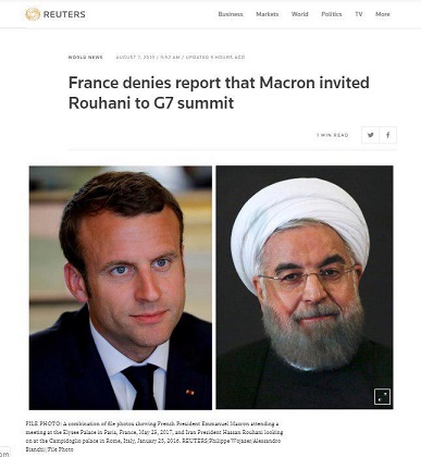 این مقام در پاسخ به گزارشی در وب سایت ال مانیتور مبنی بر اینکه ماکرون روحانی را به اجلاس جی هفت در بیاریتز در اواخر ماه اوت برای ملاقات با دونالد ترامپ رئیس جمهور آمریکادعوت کرده بود پاسخ می داد.