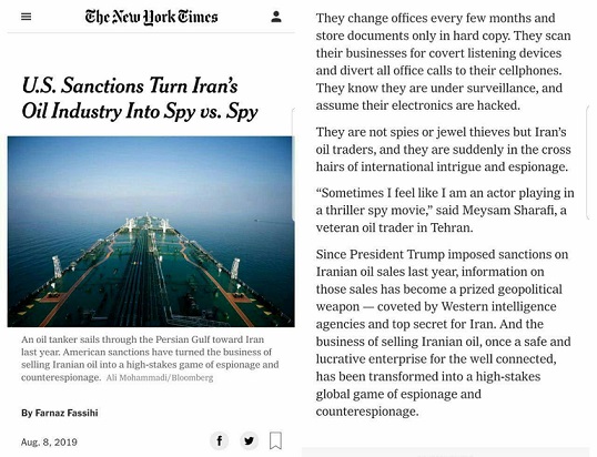تاجران نفت ایران پس از تحریمهای ترامپ، به یکباره در معرض یک توطئه بینالمللی و معرکه جاسوسی و ضدجاسوسی قرار گرفتهاند.