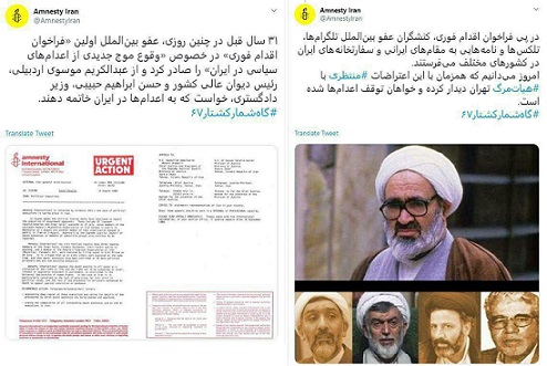 عفو بینالملل: ۳۱ سال قبل در چنین روزی، عفو بینالملل اولین «فراخوان اقدام فوری» در خصوص «وقوع موج جدیدی از اعدامهای سیاسی در ایران» را صادر کرد و از عبدالکریم موسوی اردبیلی، رئیس دیوان عالی کشور و حسن ابراهیم حبیبی، وزیر دادگستری، خواست که به اعدامها در ایران خاتمه دهند.