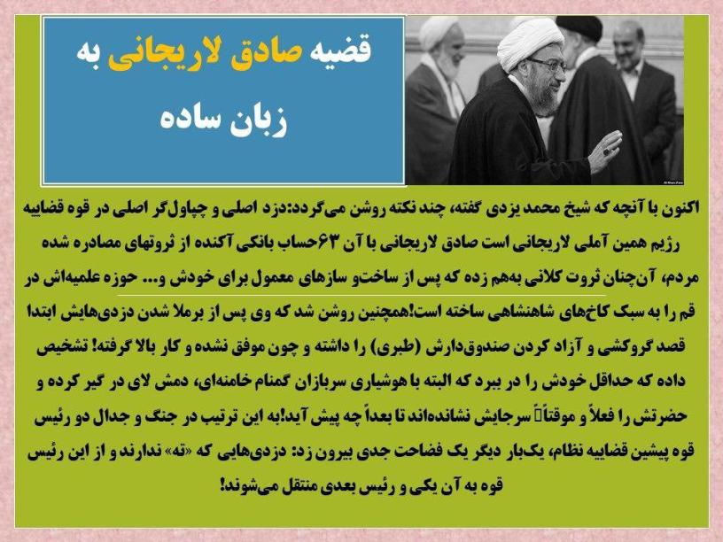 دزد اصلی و چپاولگر اصلی در قوه قضاییه رژیم همین آملی لاریجانی است.