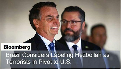 بلومبرگ روز ۲۸مرداد۹۸ نوشت: در چرخشی بسوی آمریکا، برزیل در نظر دارد حزبالله لبنان را بهعنوان گروه تروریستی اعلام کند. این در حالیست که پرزیدنت جایر بولسونارو بطور فزایندهیی دولت خود را با سیاست خارجی آمریکا همسو میکند