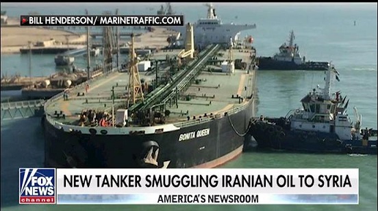 فاکس نیوز گزارش داد نفتکش بونیتا کویین که نفت قاچاق رژیم ایران را حمل میکند به سمت سوریه در حرکت است.