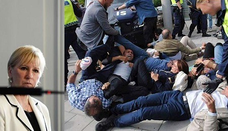 وزیر خارجه سوئد ضمن اینکه در مقابل سؤالات خبرنگاران تلاش کرد به توجیه حفظ رابطه و مماشات با دیکتاتوریها بپردازد، به ماهیت و جنایات ضدانسانی رژیم اذعان کرد.