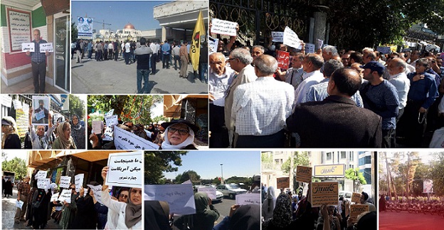 تجمع معلمان و بازنشستگان فرهنگی در مقابل وزارت کار رژیم در تهران