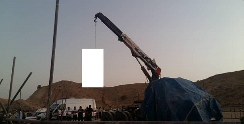 با هدف مخفی ماندن برند جرثقیل و جلوگیری از انتقادات بعدی شرکت سازنده آن روی این وسیله را برای اجرای اعدام کاملا پوشانده اند!
