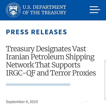استیو منوچین، وزیر خزانهداری آمریکا در این خصوص گفت: «این اقدام ما علیه شرکت نفت خام ایران این موضوع را روشن میکند که خریداران نفت این کشور مستقیما از بازوی تروریستی و شبه نظامی ایران یعنی سپاه قدس حمایت میکنند.»