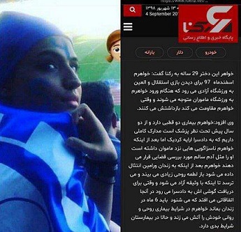 او دختری ۲۹ ساله ساکن قم بوده و چندی پیش برای تماشای بازی فوتبال تیم محبوبش استقلال تهران، وارد استادیوم شده بود، اما دستگیر شده و به جرم ناسزاگویی به مامور به تحمل ۶ ماه حبس محکوم شده و به همین دلیل خودسوزی کرده است.