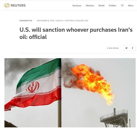 رویترز-یک مقام آمریکا روز یکشنبه به رویترز گفت آمریکا به اعمال تحریمها علیه هر کس که نفت ایران را بخرد یا معاملاتی با سپاه پاسداران انجام دهد، ادامه می دهد و هیچ معافیتی در این تحریمها قائل نمی شود.