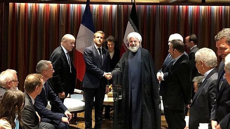 به گزارش یورو نیوز امانوئل ماکرون، رئیس جمهوری فرانسه دقایقی پس از امضای بیانیه مشترک با رهبران دو قدرت اروپایی دیگر برای متهم کردن ایران به دست داشتن در حملات عربستان، با حضور در محل اقامت همتای ایرانی خود، حسن روحانی با وی گفتگو کرد.