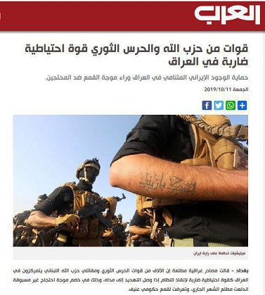 منابع عراقی آگاه گفتند که هزاران نفر از نیروهای سپاه پاسداران وجنگجویان حزب الله لبنان درعراق به عنوان یک نیروی احتیاط ضربت متمرکز شده اند تا درصورتیکه تهدید به نقطه خطرناکی رسید حکومت (عراق) را نجات دهند. این در گرماگرم موج اعتراضات بیسابقهای است که در این ماه شعله کشید وسرکوب خشن دولتی را برانگیخت.