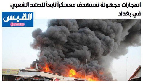 روزنامه القبس کویت از انفجار در پایگاههای بسیجیان رژیم ایران در بغداد که روز یکشنبه ۲۱مهر پایگاههای حشدالشعبی روی داد و جنوب بغداد را لرزاند خبر داد.