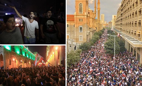 تظاهر کنندگان با وجود تهدید حسن نصرالله سرکرده حزبالشیطان لبنان خیابانهای را ترک نکردند. حسن نصرالله روز شنبه برای تظاهر کنندگان خط و نشان کشید و گفت هوادارانش را به خیابانها میکشاند و همه معادلات را تغییر میدهد.