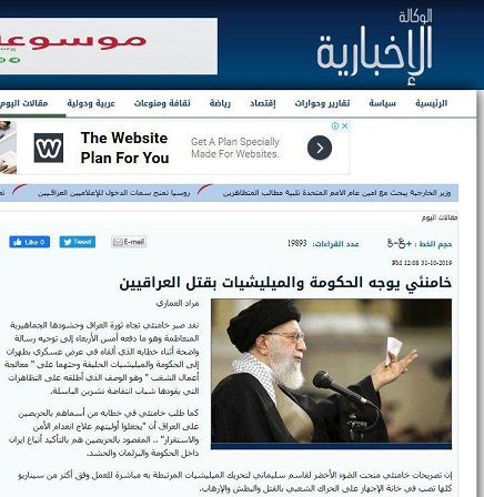 خامنه ای از انقلاب عراق و جمعیت فزاینده آن صبرش تمام شد و چهارشنبه شب در پیام آشکاری که در حین سخنرانی در رژه نظامی در تهران از دولت و شبه نظامیان تحت امرش خواست که «به شورش های عراق یعنی تظاهراتی که جوانان شجاع قیام اکتبر آنرا رهبری می کنند، پایان دهند