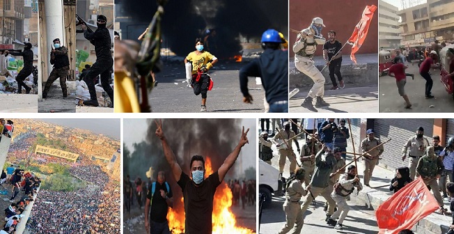 درگیری شدید دربغداد و شلیک گلوله های جنگی وگاز اشک آور نیروهای مزدورحشدالشعبی به سوی قیام کنندگان و مقاومت دلیرانه آنها
