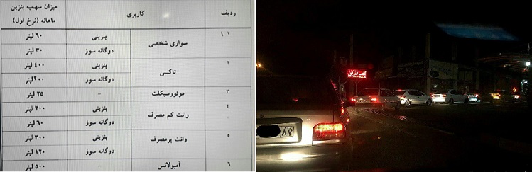 بامداد ۲۴ آبان: صف های طولانی مردم مقابل پمپ بنزین در زنجان به بخاطر احتمال افزایش قیمت بنزین