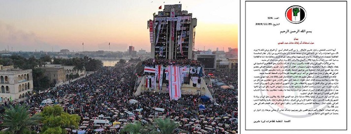 آنها خواستار تشکیل یک دولت نجات ملی توسط مردم عراق و جوانان انقلابی هستند.