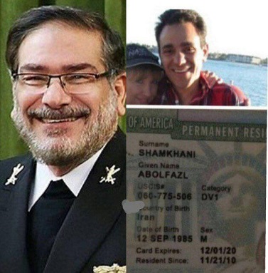 گرین کارت ابوالفضل شمخانی پسر دریادار شمخانی دبیر شورای امنیت ملی و از آمرین سرکوب مردم ایران که در آمریکا تشریف دارند!