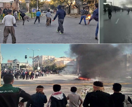 رژیم به صورت تعمدی برای در مقابل هم قرار دادن کوردها از نیروهای مزدور محلی خود خواسته بود تا با لباس کردی به مقابله با معترضان بروند. اما این توطئه هم کارآیی نداشت. تمامی میادین، خیابانها و مناطق و کوچه های مختلف شهر به محل نبرد و مبارزه ی جوانان تبدیل شده بود و همین گستردگی نیروهای رژیم را از سرکوب آنها ناتوان کرده بود.جنگ و گریز جوانان باعث سردرگمی نیروهای امنیتی و ناتوانی آنها در سرکوب شده بود. جوانان و نوجوانان خشمگین و سرخورده که خود را محروم از هرگونه امکانات و حق اعتراضی در این کشور می دیدند با مشاهده ی کشته و زخمی شدن رفقایشان سعی در ضربه زدن به نیروها و منافع رژیم برآمدند و مراکز بسیج و انتظامی، بانکها، پمپ بنزینها، فروشگاههای وابسته به سپاه را به آتش کشیدند.