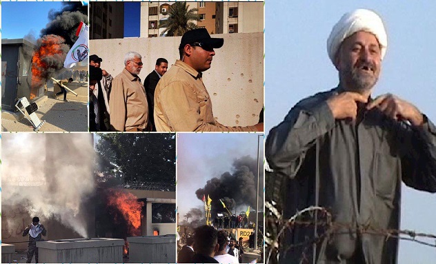 آتش زدن بخش کوچکی از دیواره بیرونی سفارت آمریکا در بغداد از سوی مزدوران رژیم آخوندها در واکنش به حمله آمریکا به پایگاهای حشد الشعبی و کتائب حزب الله بحران بین رژیم آخوندها و آمریکا در عراق بالا می گیرد. خامنه ای برای روحیه دادن به نیروهایش به این اقدامات تروریستی نیاز دارد. اما رژیم آخوندی که از همه سو در محاصرهٔ بحرانهاست، و از یکطرف امواج قیام مردم بهپاخاسته ایران بحران درونیاش را به اوج رسانده و از طرف دیگر در عراق هم بر اثر قیام مردم عراق در بنبست مطلق قرار دارد، بهنظر میرسد با حساب روی بیعملی و تحمل آمریکا، حمله موشکی نیابتی به پایگاههای آمریکا را اقدام بیهزینهیی برای باز سازی روحیهٔ نیروهای در حال ریزش خود بهویژه در عراق تصور کرده بود، اما این بار حساب و کتابهایش نادرست از آب در آمده و بر سر خودش خراب شده است.