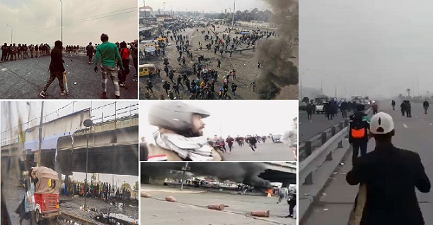 درگیری بین انقلابیون و نیروهای سرکوبگر وابسته به رژیم ایران در اتوبان محمد قاسم در مرکز بغداد