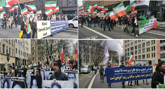 همزمان با برگزاری کنفرانس امنیتی مونیخ در آلمان در اعتراض به حضور وزیر خارجه آخوندها ، ایرانیان آزاده وهواداران مقاومت با در دست داشتن پلاکاردهایی خواستار اخراج ظریف از این اجلاس شدند. روی پلاکاردی نوشته بود:«کنفرانس امنیتی مونیخ جای تروریستها نیست»نشانان در شهر مونیخ تجمع اعتراضی برگزار کردند.