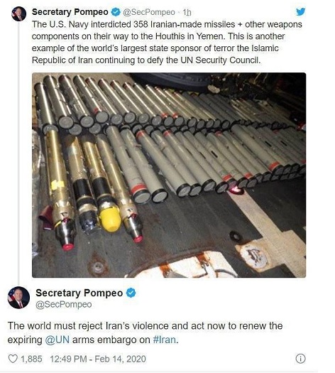 وزیر خارجه آمریکا خواستار تمدید تحریم تسلیحاتی رژیم ایران در سازمان ملل متحد شد.