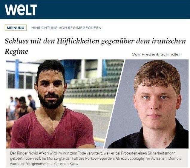 با اعدام قهرمان کشتی نوید افکاری، رژیم ایران به سیاست وحشیانه سرکوب ادامه می دهد. اکنون دیگر نیازی به ملاقات و پذیرایی با تشریفات بالا نیست. هایکو ماس وزیر خارجه آلمان باید وزیر خارجه ایران را نپذیرد و در عوض تبعیدی های ایرانی را دعوت کند.