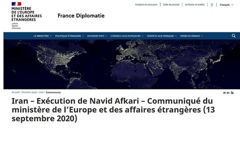 سایت وزارت خارجه فرانسه ۱۳سپتامبر۲۰۲۰