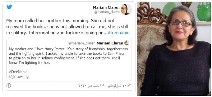 مریم کلارن در توییتر خود نوشت که مادرش همچنین از تماس گرفتن با او محروم است.