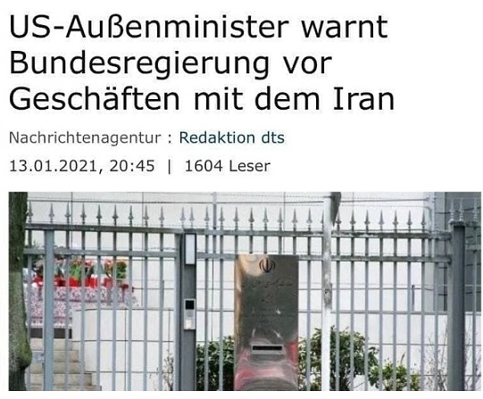 واشنگتن (آژانس خبری dts) – مایک پمپئو ، وزیر امور خارجه ایالات متحده ، فوراً به دولت آلمان در مورد تجارت با ایران هشدار می دهد. وی به «بیلد» گفت: جمهوری اسلامی ایران به همان تروریست هایی كه مسئول جنایات ۱۱سپتامبر هستند و همچنین در اروپا ، آفریقا و خاورمیانه دست به حملات تروریستی زده اند ، پناه می دهد.