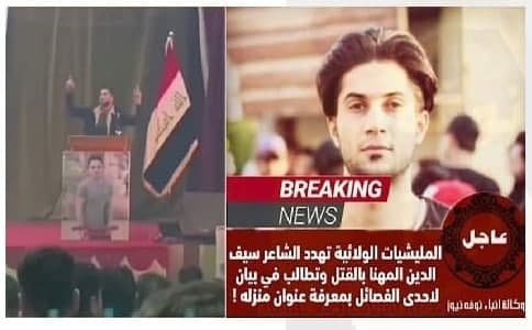 بهدنبال برگزاری جلسه بزرگداشت شهدای انقلاب اکتبر توسط جوانان شورشی در ناصریه و شعری که توسط شاعر جوان سیفالدین المهنا با ترجیحبند «عمامه خامنهای به اندازه یک بند کفش ارزش ندارد» خوانده شد، وحوش خامنهای در عراق درصدد انتقام و قتل شاعر جوان سیفالدین مهنا هستند