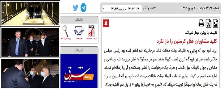 روزنامه حکومتی شرق: قالیباف با پوتین دیدار نمیکند کلید مشاوران قفل کرملین را باز نکرد