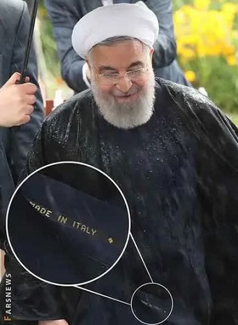 آخوند روحانی در آخرین جلسه هیات دولت با پوشیدن عبایی که رویش نوشته ساخت ایتالیا مورد سوال باند دیگر قرار گرفته که چرا در شرایطی که خامنه ای بر تولید داخلی تاکید دارند رفته عبای ایتالیایی پوشیده؟! در نظام آخوندی که پشت گردن هرکدامشان را نگاه بکنید نوشته شده مید آف انگلند(ساخت انگلستان)و بیشتر سرانش تابعیت دوگانه دارند و به ظاهر به دلیل ماهیت واپسگرا و ضد تاریخی اش مستقل و منزوی ولی در عمل به همه جا وابسته است و برای زندانی کردن مردم دستبند و پابند هم از انگلیس و جاهای دیگر وارد می کند؛ عبای ایتالیایی رئيس دولتش تعجب ندارد. خمینی همان زمان که می گفت اگر اسرائیل دست به دریا بزند دریا نجس می شود از اسرائیل اسلحه وارد می کرد!