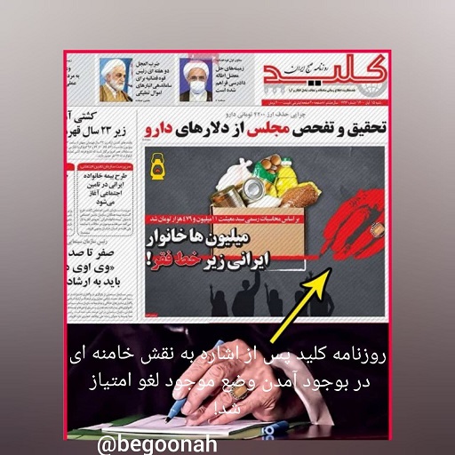 روزنامهٔ حکومتی کلید در صفحهٔ اول شمارهٔ ۱۵آبان خود، بهصورت معناداری عکس دست خامنهای را بهصورت گرافیکی درج کرده بود که در حال کشیدن خط فقر است و روی آن نوشته شده: «میلیونها خانوار ایرانی زیر خط فقر».