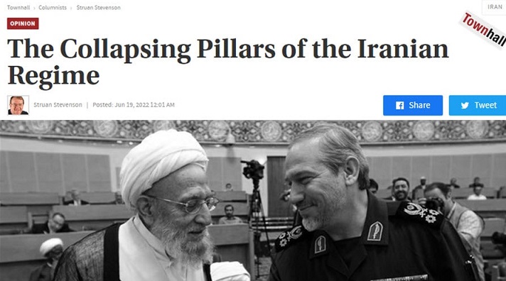 وبسایت تاون هال روز ۲۹خرداد ۱۴۰۱در مطلبی از استراون استیونسون با عنوان «فروپاشی ارکان رژیم ایران» نوشت: پس از انقلاب ۱۳۵۷، رژیم ایران که توسط آخوند متعصب سالخورده آیتالله روحالله خمینی دزدیده شد، روی سه رکن بنا نهاده شد.