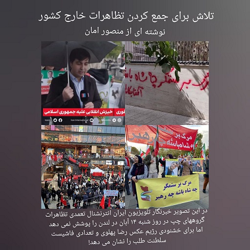 هیچکس بیشتر از رژیم لرزان ولایت فقیه از توقُف حرکتهای حمایتی ایرانیان خارج کشور خُشنود نمی شود و هیچکس بیشتر از آن، در ارایه تصویری مُتفرق، پرخاشگر و نامُدارا از آنها در پهنه بین المللی منفعت نمی برد. ساده لوحانه است اگر پنداشته شود رژیمی که برای خاموش کردن بانگ شبانه یک مُعترض، کوچه گردی می کند و به پنجره خانه ها شلیک می کند، در برابر صدای نیرومند ده ها هزار نفر در برلن، ونکوور، واشنگتن و جُز آنها بدون واکُنش می ماند. از آنجا که «نظام» قادر به سرکوب عُریان این حرکتها نیست، بنابراین ابزار اصلی آن در تخریب تظاهُرات حمایتی اقدام از درون و در صحنه همانند موارد هفته گذشته و یا از طریق جنگ روانی و پخش شایعات، اخبار دُروغ و افترا زنی و به بیان فراگیرتر، سرکوب غیرمُستقیم است. راست افراطی سلطنت طلب در هر دو لایه این پروژه نقش فعالی بازی کرده است.
