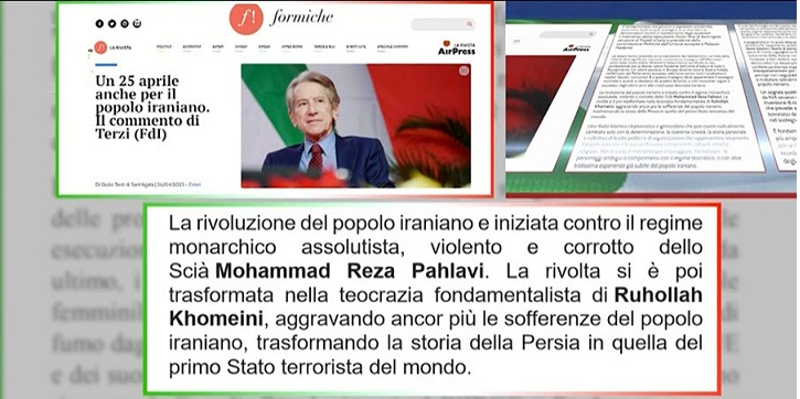 فورمیکه – ایتالیا ۵اردیبهشت ۱۴۰۲: «یک روز آزادی برای مردم ایران» به قلم سناتور جولیو ترتزی رئیس کمیسیون سیاست اتحادیه اروپا در سنای ایتالیا بهمناسبت روز ۲۵آوریل، روز آزادی ایتالیا از فاشیسم.