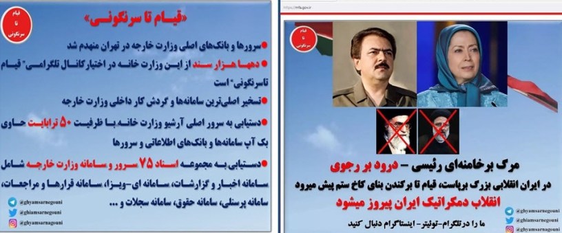 وبسایت فاکس نیوز روز یکشنبه ۱۷ اردیبهشت در گزارشی از تسخیر و از دسترس خارج کردن ۲۱۰سایت و سامانه وزارتخارجه رژیم در تهران که روز گذشته توسط کانال تلگرامی قیام تا سرنگونی اعلام شده است نوشت: اسناد فاش شده جزئیات تلاشهای ایران برای تبادل زندانیان با بلژیک را نشان میدهد