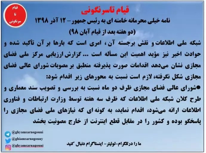 قیام تا سرنگونی نامه خیلی محرمانه با امضاء علی خامنهای را منتشر میکند