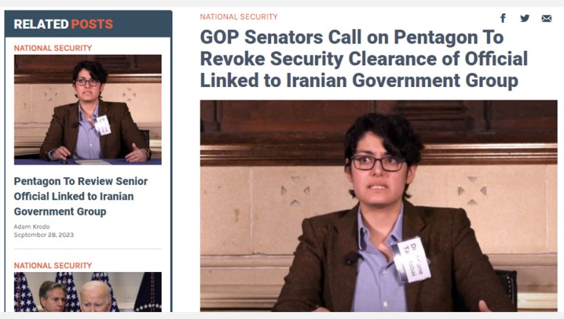 واشنگتن فریبیکن در گزارش روز جمعه ۷مهر، نوشت، ائتلافی از سناتورهای جمهوریخواه در نامهیی به وزارت دفاع که تحقیقات خود را در این هفته آغاز کردهاند، اعلام کردند که پنتاگون باید فوراً مجوز امنیتی یک مقام ارشد که این هفته گفته میشود بخشی از یک شبکه تبلیغاتی مخفی رژیم ایران است را لغو کند.