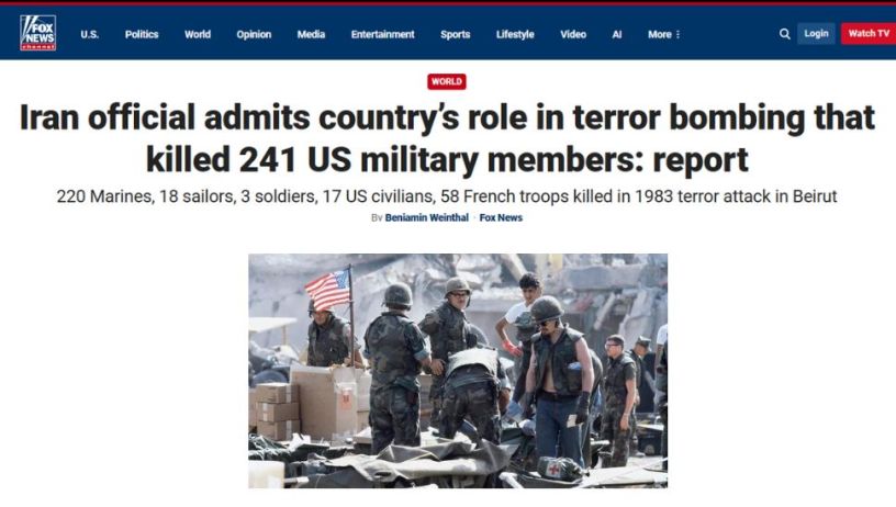 فاکس نیوز- یکشنبه ۹ مهر نوشت رژیم ایران رسماً به نقش این کشور در بمبگذاری تروریستی که منجر به کشته شدن ۲۴۱ نظامی آمریکایی شد اعتراف کرد.