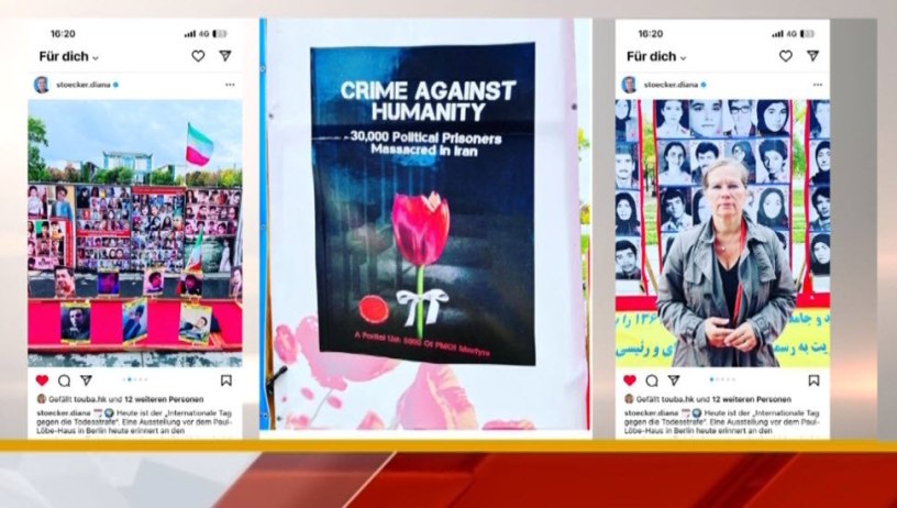 خانم دایانا اشتوکر نماینده پارلمان فدرال آلمان که از نمایشگاه گرامیداشت شهیدان در مقابل پارلمان آلمان بهمناسبت روز جهانی علیه اعدام بازدید کرده بود طی گزارشی از این نمایشگاه نوشت: