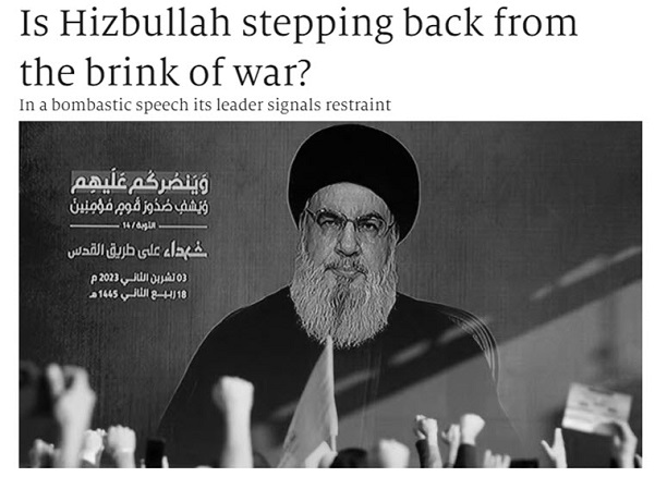 اکونومیست روز ۱۳آبان در گزارشی درباره حرفهای روز گذشته حسن نصرالله سرکرده حزبالشیطان لبنان در مطلبی نوشت: آیا حزبالله از آستانه جنگ عقبنشینی میکند؟