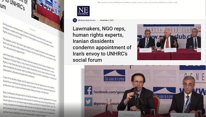 آنتو استانگو رئیس فدراسیون حقوقبشر در ایتالیا در بخشی از سخنان خود گفت انتصاب نماینده رژیم ایران در مجمع اجتماعی شورای حقوقبشر نشاندهنده ضعف سیستم سازمان ملل است که به رژیمهای ظالمی مانند رژیم ایران اجازه میدهد تا ریاست نهادهای مختلف آن را برعهده بگیرند و اصول سازمان ملل را به سخره بگیرند.
