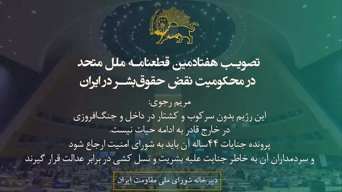 مریم رجوی، پرزیدنت شورای ملی مقاومت اعلام کرد: رژیم ایران بدون سرکوب و کشتار در داخل و جنگافروزی در خارج قادر به ادامه حیات نیست. مریم رجوی همچنین تأکید کرد رژیم کمترین ارزشی برای اصول و معیارهای بهرسمیت شناخته شده حقوق بشری، از جمله حق حیات، آزادی بیان، آزادی تجمعات، حقوق اقلیتهای قومی و دینی، حقوق زنان و حق دادرسی عادلانه قائل نیست و آنها را مستمراْ و به وخیمترین شکل نقض میکند.